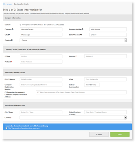 The steps for installing the Comodo EV SSL Certificate are similar to the Comodo SSL Certificate with the exception that more information will be required to order this certificate.