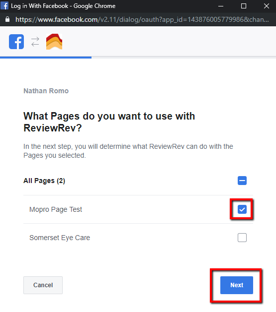 Select the brand page you want us to have access to and then select Finish.