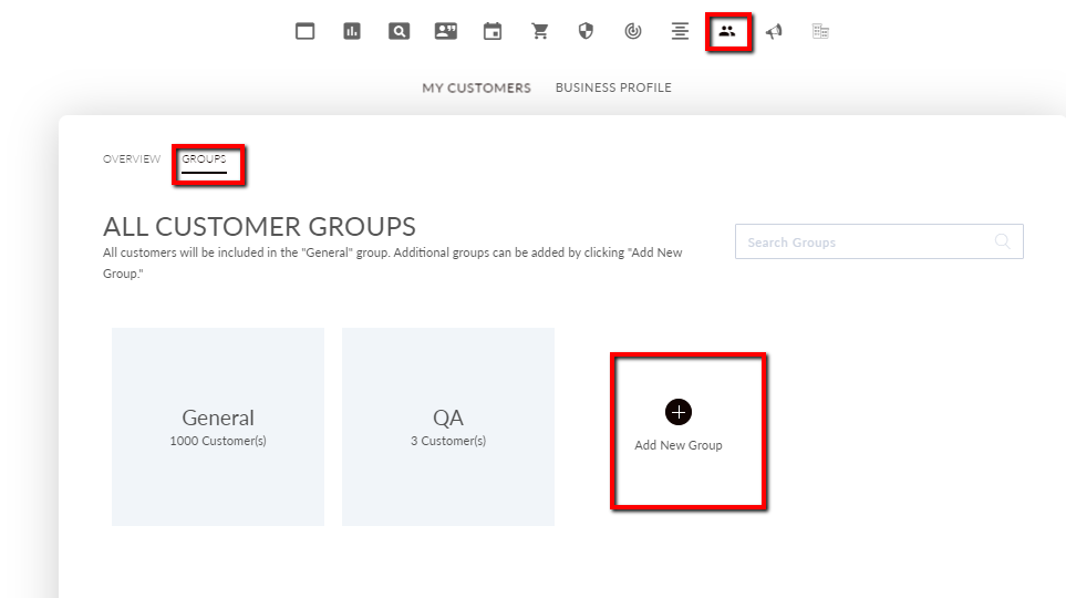 Select Add Customer Group from the My Reviews page. To create a new group, select Create Customer Group. Select the + icon to add a new group.