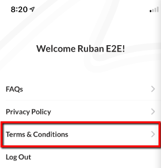 How to view terms and conditions in the mobile app September 23, 2021 18:05 To view Terms and Conditions, select the menu on the top left corner of the app. Select the Terms and Conditions section. You will be redirected to our Terms and Conditions page. Related articles How to access the mobile application Where to download the mobile app How do I add a customer in Your Customers? What the mobile app does Key Terms