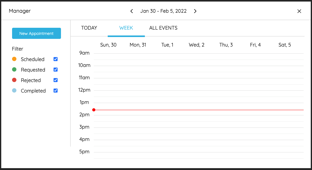 You will see a full list of completed, scheduled, requested and rejected appointments.