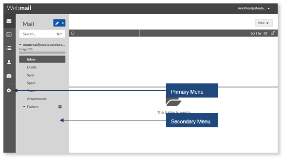 Desde el menú desplegable de Correo, haga clic en el ícono de Configuración de Bandeja de Entrada.