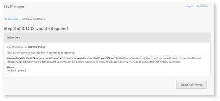 - A tanúsítvány megrendelése után frissítenie kell a DNS -t.