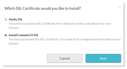 - Válassza ki a telepíteni kívánt SSL -tanúsítvány típusát, majd válassza a Tovább lehetőséget.