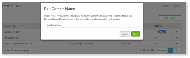 3. Miután befejezte a tartománynév megadását, válassza a Mentés lehetőséget.