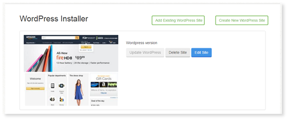 - Kattintson az Új WordPress webhely létrehozása elemre.