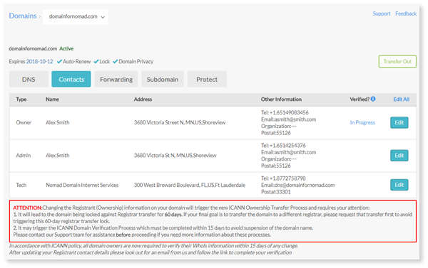 Megjegyzés: lehetősége van egy regisztrálót egyszerre vagy egyszerre szerkeszteni. Ha az „Összes szerkesztése” lehetőséget választja, akkor az összes domain-t ugyanahhoz a névjegyhez regisztrálja.