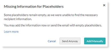 3. Ha az e-mailben megjeleníteni kívánt adatok közül nem adott meg mindent, az alábbi értesítés jelenik meg: