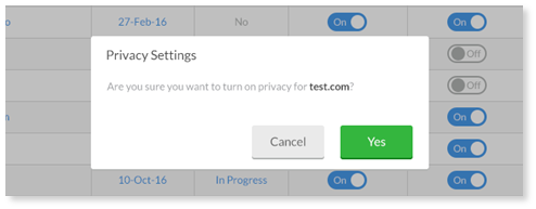 Për të ndryshuar cilësimet e tua të privatësisë, përdor të njëjtin çelës Aktiv/Joaktiv nën kolonën e privatësisë. Do të kërkohet të konfirmosh zgjedhjen tënde duke zgjedhur Po ose Anulo.