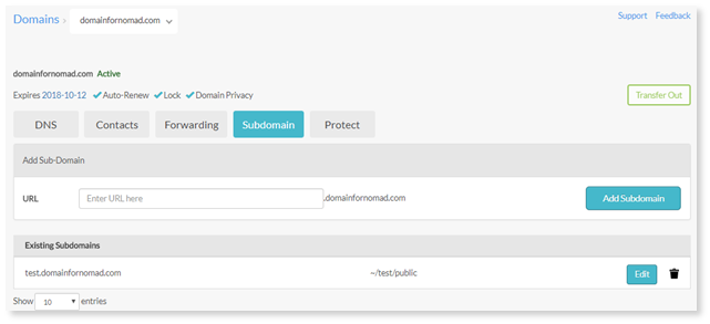 3. Do të shikosh një listë të nëndomeneve që ke shtuar më poshtë.