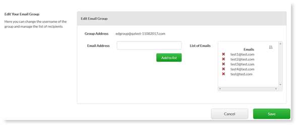 4. Në anën e djathtë mund të përdorësh “x” për të fshirë një adresë emaili nga grupi.