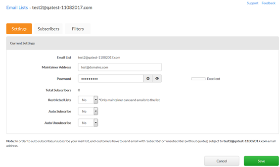 - Në skedën e cilësimeve mund të ndryshosh adresën dhe fjalëkalimin e mirëmbajtësit të listës me emaile. Gjithashtu, do të mund të shikosh: