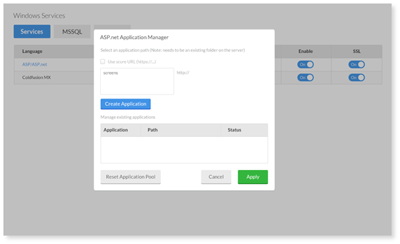 Nëse ke aplikacione ASP.NET, do të nevojitet akses për të krijuar/menaxhuar aplikacionet e tua ASP.NET në sistemet Windows.