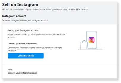 Pronari i dyqanit do të duhet të ketë një llogari Facebook të konfiguruar para se ta lidhë me llogarinë e Instagram.